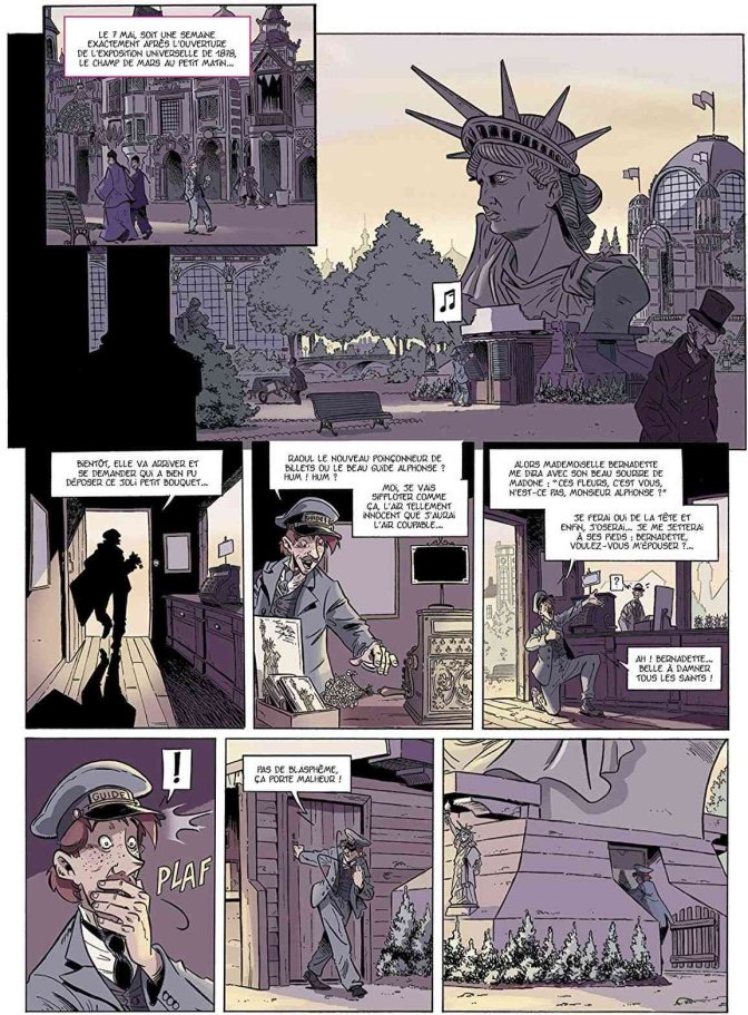 Nous retrouvons donc Julie pour cette troisième histoire complète. Cette série, dont la particularité est de se dérouler à chaque fois lors d’une exposition universelle parisienne, nous fait faire des bonds dans le temps entre chaque tome. C’est l’occasion de découvrir avec plaisir Paris à différentes époques, avec son lot d’évolutions et d’innovations.