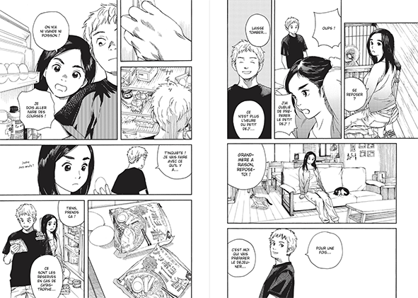 Pour revenir brièvement sur le dessin, il faut souligner le travail de fond mené par Makoto Ojiro, qui accorde de l’attention à chaque tuile du temple, à chaque chat, à chaque pantalon avec la même constance, bâtissant un cadre rural réaliste, non sans lui enlever une certaine poésie. Les visages heureux des protagonistes et les mines paresseuses des félins ajoutent à cette ambiance moelleuse, comme si les pages étaient un cocon que l’on a hâte de retrouver.