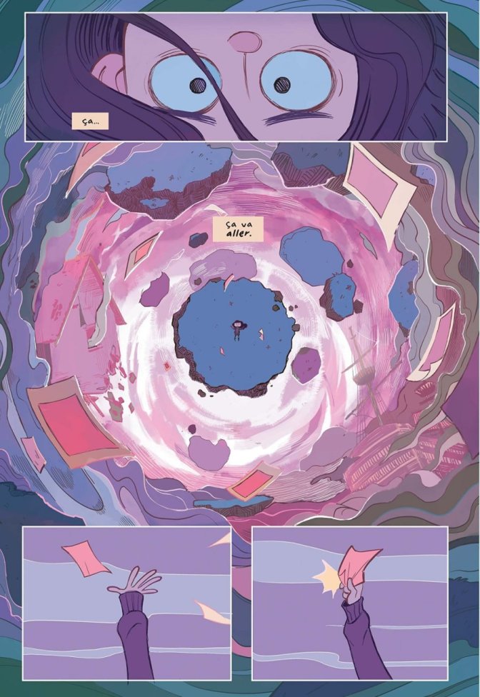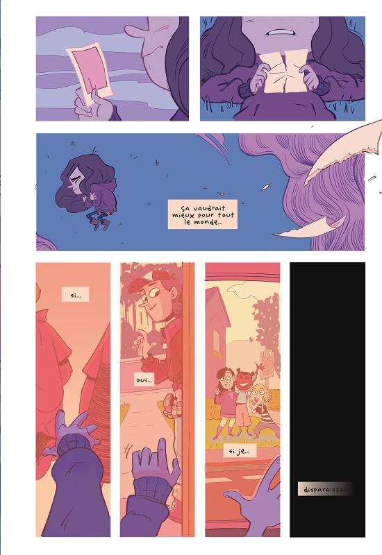 Critique : Partir d’une histoire de harcèlement scolaire, ici à travers la petite taille de l’héroïne tout juste arrivée d’un déménagement, pour en faire une aventure fantastique héroïque, n’est pas forcément original, mais lui donner cette touche comique et en même temps pathétique n’est pas une chose aisée. La Fille et le Kibrille y parvient parfaitement, jonglant avec agilité sur ces deux émotions, auxquelles on peut rajouter un soupçon de peur propre au fantastique, la formation des éléments d’ombre ayant été entrevue dans une sorte de vide aspirant la réalité. Bien entendu, si l’on ne craint pas pour la vie de Maxine, il se tisse des liens entre les personnages, notamment une camarade un peu rigide, avec le fameux Kibrille, qui ne sont pas sans rappeler le cinéma de Spielberg, Donner ou Dante de l’âge d’or des aventures pour les plus jeunes. Une scène de destruction massive lors d’une retenue est par exemple assez hilarante, et apporte une touche décalée, cette fois plus proche des séries, films ou œuvres de ce XXIe siècle.