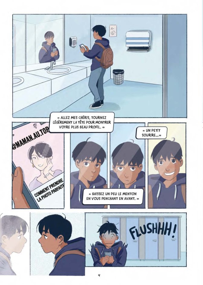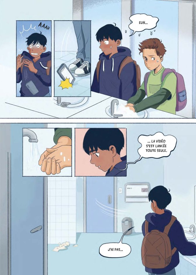Pour retranscrire ce message plein de sentiments, le dessin s’avance sans volonté de rompre ou de surprendre. Très doux, entre comic et manga, le style de Neetols se veut apaisant, puisqu’il parle de revenants avec des couleurs vives, puisqu’il traite de mort avec des sourires. C’est presque un soulagement de lire ces pages sans avoir à imaginer le pire, qui se trouve prendre ici la forme d’un rejet social autour d’un feu de camp, mais sans les démons ou la moindre goutte de sang. D’ailleurs, même l’ombre y est plutôt tranquille, jamais noire, toujours bleue comme un chagrin, et les peaux ont elles un teint chaud qui fait du bien, jamais livides, jamais vraiment transparentes, même lorsqu’on est un fantôme.