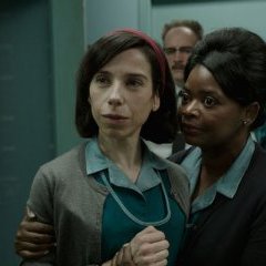 Mais là où son long-métrage parvient à créer une intensité émotionnelle à l’état pur, c’est assurément dans l’alchimie que la mise en scène parvient à faire naître entre ses deux personnages principaux. Les prestations des acteurs n’y sont évidemment pas non plus pour rien. Face à Doug Jones, qui a déjà interprété presque toutes les créatures du bestiaire de del Toro, Sally Hawkins fait preuve d’un charme magnétique irrésistible. En plus de se donner le défi d’exprimer son amour sans mot dire (ce qui, déjà, est une performance comme les aime beaucoup l’Académie), elle parvient à exprimer une candeur et une sensibilité qui la rendent bouleversante.