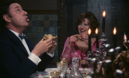 Si l’art de la comédie, de la farce est poussé à l’extrême de ses possibilités, c’est bien pour nous signaler tout le sérieux (mais tellement fin et subtil et drôle aussi) de cette pantalonnade admirablement filmée. Quoi dire sur ce film légendaire que n’ait formulé le suave et excellent Jean Douchet dans le supplément de ce DVD ? "Légendaire", c’est-à-dire mal vu et mal jugé la plupart du temps, comme tous ces films cultes qu’on a vus une fois mais dont on ne garde qu’un souvenir vague et finalement convenu. Faites un petit sondage autour de vous : tout le monde a vu La grande bouffe mais personne ne s’en souvient vraiment, ou bien n’en garde qu’une impression de subversion rangée à côté de toutes les autres, dans le tiroir de la commode (elle porte bien son nom, la commode). Laissons donc à Jean Douchet le soin de dire l’essentiel, et bien plus, dans des propos d’une clarté et d’une profondeur dont on aimerait bien être capable... et revenons à la comédie. Car La grande bouffe est un film d’acteurs. Quatre acteurs d’un culot et d’un courage inouïs (Noiret gros bébé, Piccoli tante refoulée, Mastroianni au sommet de son génie, Tognazzi exact et juste à la folie), quatre plus une : Andréa Ferréol.