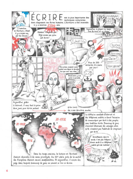 Vitali Konstantinov utilise la BD pour nous présenter, ou plutôt nous brosser, la vie foisonnante de l’écriture. Personnages historiques, extraits d’alphabets différents, tour du monde en quelques cases pour découvrir avec plaisir et richesse une histoire riche, passionnante et surtout étonnante !