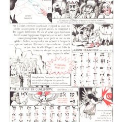 Un conseil : ne vous précipitez pas pour tout dévorer d’une traite. Bien au contraire, prenez le temps de lire quelques planches sur un continent, un pays, de parcourir les extraits d’alphabets présents, de digérer le vocabulaire spécifique de cet univers grâce – entre autres – au lexique final, et savourez ce voyage. Voire, pourquoi pas, prenez un crayon et une feuille et essayez de reproduire ces signes porteurs de sens, et ressentez les cultures qui se cachent derrière.