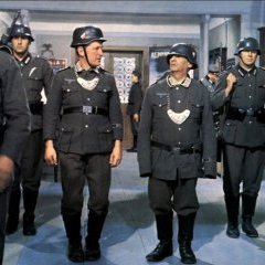 Bien sûr, certains s’en prendront à cet humour typiquement gaulois, façon Astérix, imprégné d’une volonté réconciliatrice, conforme à la mythologie gaulliste d’une France unanimement résistante. Il est vrai que nos personnages s’opposent farouchement à l’envahisseur, comme chez Uderzo et Goscinny. Il est vrai que les Allemands n’y ont pas le beau rôle, évoqués de la façon la plus stéréotypée qui soit, c’est-à-dire en aboyeurs décérébrés. Il est finalement rassurant de se sentir Français, quand on essentialise à ce point un peuple à combattre. Mais enfin, si on prend acte que la comédie n’est pas un cours d’Histoire et que la caricature est son carburant potentiel, on prend un plaisir sans cesse renouvelé à voir ces pieds-nickelés, ballottés au gré de leurs aventures, malins et teigneux, sans cesse contraints à résoudre les difficultés auxquelles ils sont confrontés. A sa sortie, La grande vadrouille a été un immense succès, qui appelait d’autres fims du tandem comique. Hélas, les circonstances en ont fait la dernière collaboration de Bourvil et de Funès.
