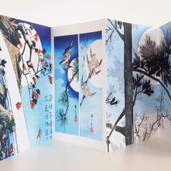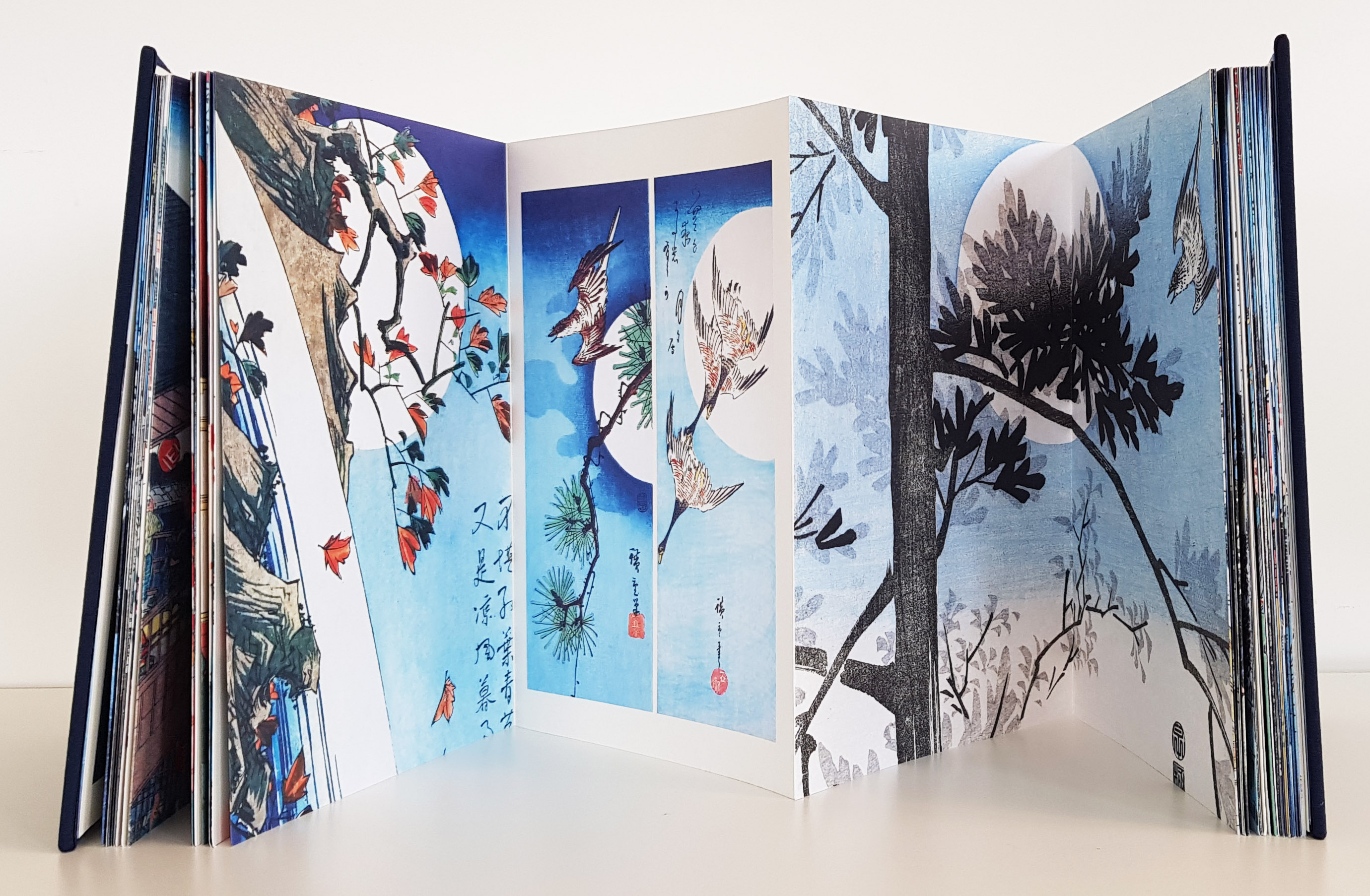 Ce livre différent est un objet d’une facture dont Hazan réussit à rendre abordable la diffusion. Un long soufflet de planches est tenu fermé par un cordon de satin, on peut le déployer en partie ou totalement. Un fin livret de références et de commentaires accompagne la contemplation des sujets. On voyage. On commence à vraiment comprendre ceux qui partagent leur admiration pour la lune, la neige et les fleurs.