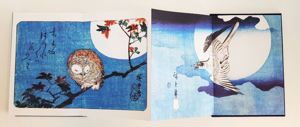 Les vingt-huit vues au clair de lune d’Hokusai n’a pas d’équivalence à la même époque en Occident, aucun artiste n’a systématisé à ce point un sujet, n’a inséré, jour après jour, le croissant lumineux jusqu’au cercle parfait au sein de ses œuvres. Quel avantage a-t-il pu en tirer ? Qu’apporte la lune à la stylisation de la nature ? Elle est une référence géométrique simple, généralement un cercle blanc, représentant l’apogée de son éclairement, qui vient mettre en valeur les architectures compliquées de la végétalisation extrême-orientale. Dans Branche de prunier rouge devant la lune d’été d’Hiroshige, couverture de ce livre, sont dessinés en contre-lumière, sur un dégradé bleu nuit, les fleurs écloses et les rameaux tortueux zébrant le disque lunaire.
