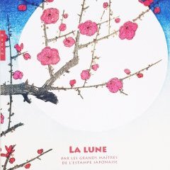 Résumé : La lune occupe une place très singulière dans la culture japonaise, au point qu’une fête, Tsukimi, lui est traditionnellement consacrée chaque année, à une date qui varie entre la mi-septembre et le début d’octobre, suivant le calendrier lunaire. La célébration, toujours vivace, consiste à se réunir en famille ou entre amis pour contempler l’astre nocturne lorsqu’il est dans sa phase pleine, au moment de l’année où sa brillance est la plus grande, rituel qui s’accompagne d’offrandes et de mets spécifiques. Contrairement à la tradition occidentale qui associe à la lune une image mélancolique, voire négative, elle est au Japon l’expression de la fécondité et de la prospérité – trace, sans doute, de fêtes anciennes célébrant la fin des récoltes. Plus largement, elle symbolise l’automne, participant ainsi d’un genre poétique et artistique intitulé « Neige, lune et fleurs », qui résume le cycle des saisons. Les estampes réunies dans cet album témoignent de l’importance qu’elle occupe dans l’imaginaire des artistes. Certaines illustrent clairement la fête de Tsukimi, montrant des réunions sur une terrasse ou sur le bord d’une rivière. D’autres rappellent son lien étroit avec la poésie, comme en attestent les feuillets entre les mains de quelques personnages, mais aussi avec les contes et les récits mythologiques – rappelés notamment par la présence de lapins. Ailleurs, la lune marque simplement le passage à la nuit, lorsque le soleil a disparu et que chacun se hâte de rentrer chez soi ; ou au contraire, quand la tombée du jour sonne le début d’une autre vie, celle des courtisanes et des plaisirs secrets. Enfin, présente parfois pour sa seule qualité esthétique, la lune éclaire un paysage, empreint dès lors de mystère, ou participe d’une composition savante et délicate, mêlant fleurs et oiseaux. Les plus grands noms de l’estampe japonaise se trouvent réunis dans ce recueil, Hokusai, Hiroshige, Yoshitoshi, dernier grand maître de l’ukiyo-e, plus tard Hasui Kawase et bien d’autres. Si chacun, avec son style singulier, a célébré l’astre de la nuit, de l’ensemble se dégage une atmosphère particulièrement paisible et poétique.