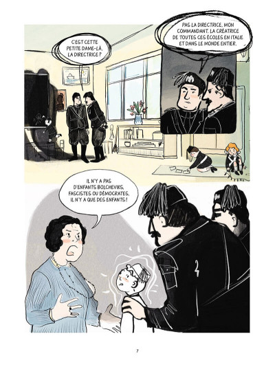 Si la vie de Maria Montessori est remarquable, on peut légèrement regretter qu’elle ne soit que survolée. Par exemple, ses études de médecine dans un siècle où les femmes en sont normalement exclues, son rejet du fascisme, évoqué comme son séjour en Inde, mais si brièvement. Dommage pour une femme dont l’histoire est aussi connectée à la grande Histoire.