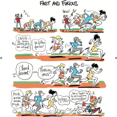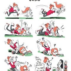 Le dessin, expressif et dynamique, agit véritablement comme un moteur, faisant avancer les saynètes et leur dimension comique autant, si ce n’est davantage, que les dialogues.