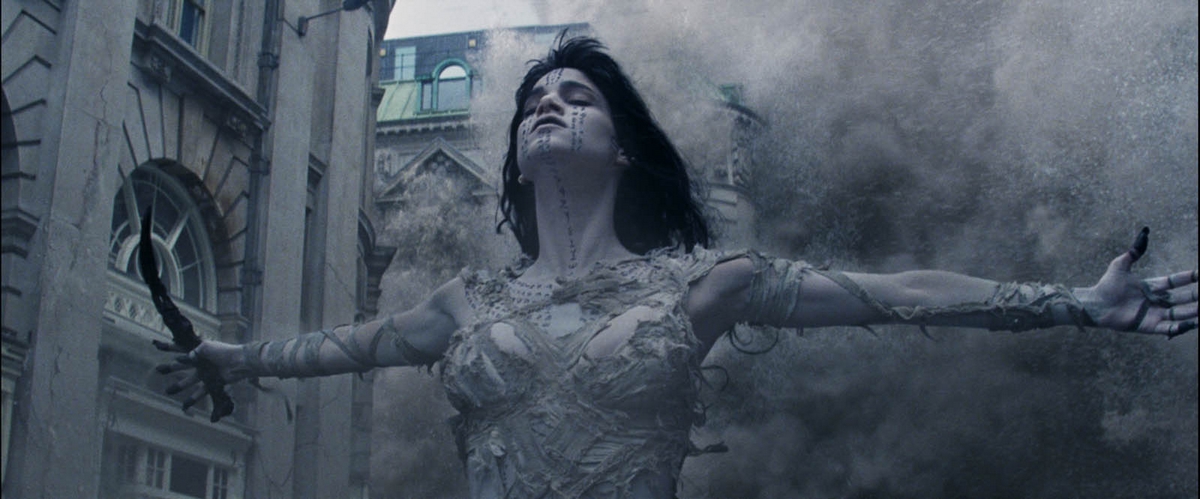 La suite du récit se réduit à une suite quasi ininterrompue de scènes d’action, qui divertissent gentiment, installées dans le confort relatif d’effets spéciaux spectaculaires qui parviennent à peine à masquer les grosses lacunes scénaristiques (et dire que David Koepp a contribué à l’écriture, il y a vraiment quelque chose qui va pas). Le résultat esthétique et visuel n’est cependant pas si catastrophique. Au milieu des décombres et de la poussière des bâtiments historiques londoniens, la couleur argile de l’image est plutôt agréable à regarder. On se surprend même à repenser à certains films d’horreur kitsch américains : le personnage de Chris Vail, transformé en mort-vivant par Ahmanet et guidant Nick tout au long de son périple, rappelle celui de Victor Pascow, cadavre au crâne ouvert prodiguant de bons conseils à Louis Creed dans Simetierre de Mary Lambert.