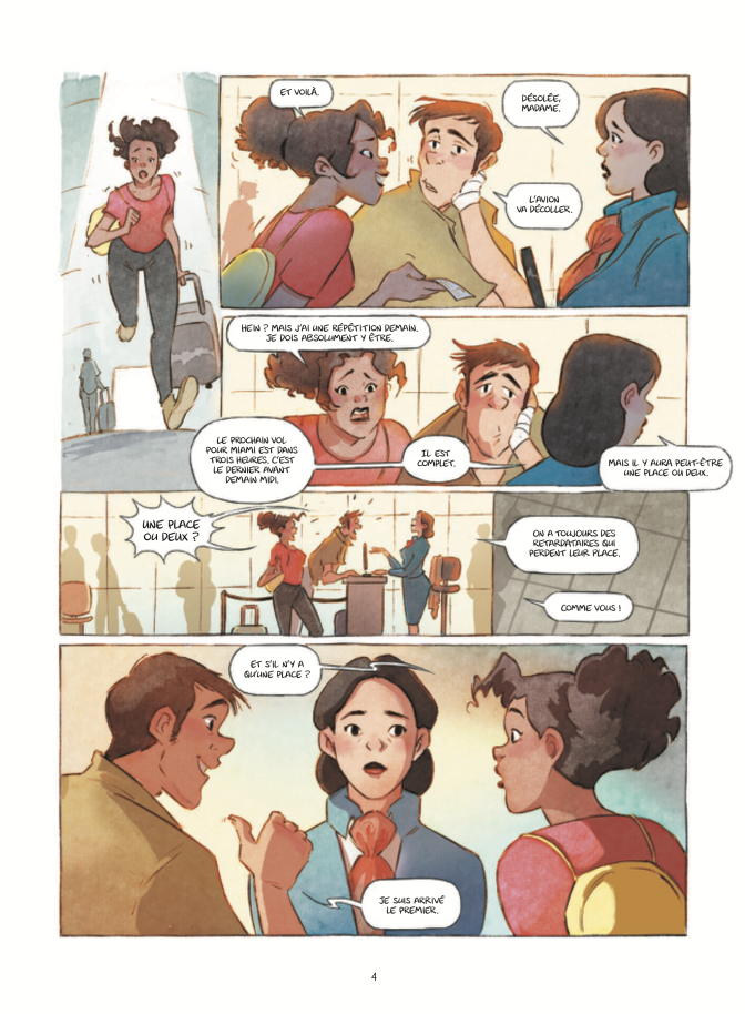 David Graham écrit cette histoire d’avion manqué. Aurélie Guarino dessine et met en couleurs ce récit nocturne et les rencontres improbables qui vont mener à la formation d’un étonnant quatuor. Les deux inconnus vont-il trouver un sens à leur vie au bout de cette nuit ?