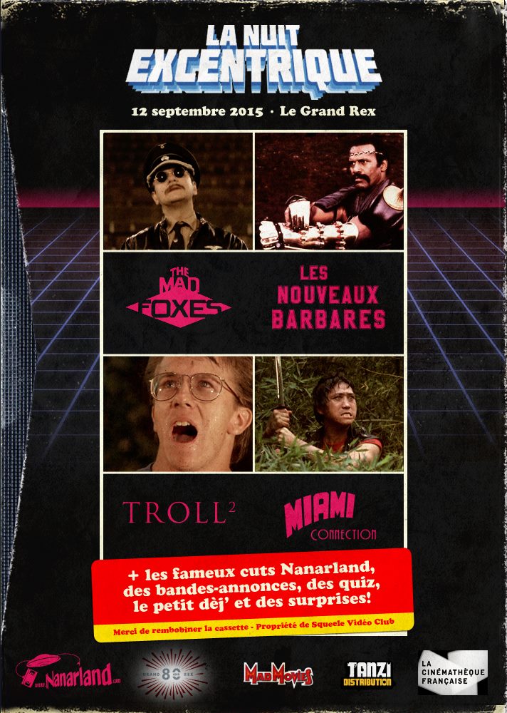 La Nuit Excentrique 2015 vous propose un programme 100% nanar à se pourlécher les babines, au Grand Rex ! Une première pour cet événement devenu avec le temps un incontournable de la rentrée parisienne, au même titre que l’Etrange Festival.
