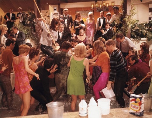 The Party demeure, dans la forme et le fond, un film inclassable. Comédie burlesque, satire, conte moral : c’est un peu tout cela à la fois, comme si Blake Edwards avait voulu nous offrir un mélange des genres. Au final, on a un petit chef-d’œuvre, qui doit autant aux maîtres du muet du début du siècle qu’à Tati (chaque personnage du film est spectateur des autres et source de spectacle). Un film indispensable.