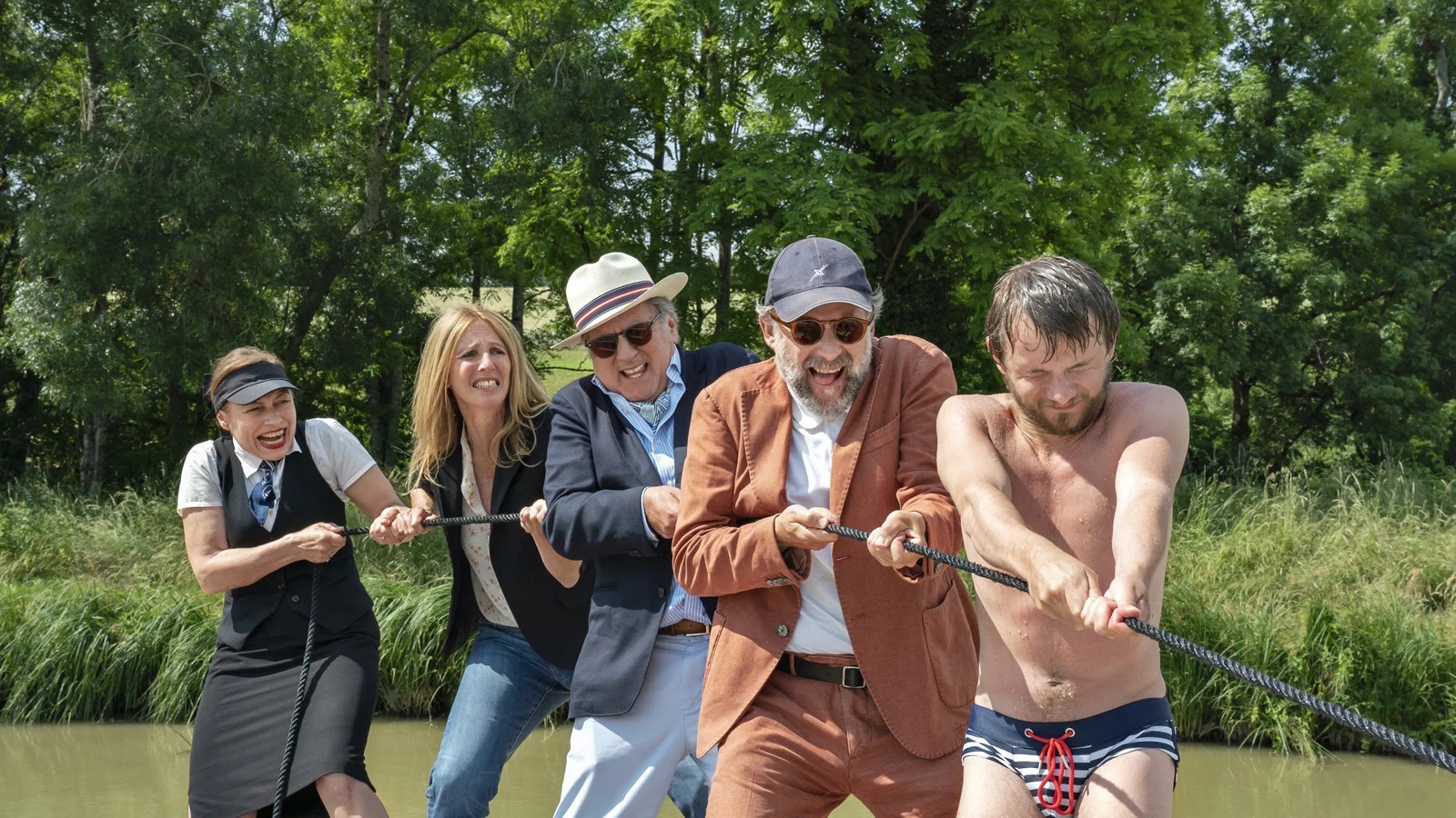 Le plus insupportable demeure le personnage du chef d’entreprise. S’il donne une somme si importante pour qu’on lui organise un week-end de rêve, il se satisfait d’activités et d’un confort ridicules, avec à ses côtés son assistante qui feint d’y trouver du plaisir. Daniel Auteuil se perd dans des comportements grotesques, qui discréditent toute forme de profondeur chez son personnage. On comprend les velléités de Bruno Podalydès à divertir ses spectateurs mais cela ne l’obligeait pas à restreindre ses personnages à l’épaisseur d’une feuille.