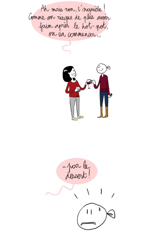 Mais le plus déstabilisant pour un français c’est de commencer le dîner par le sucré … de peur de ne plus avoir de place dans l’estomac pour la galette des rois, dixit une amie chinoise de l’auteure.