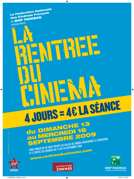 C’est une nouvelle Rentrée du cinéma que les Français pourront découvrir dans les salles du 13 au 16 septembre. Pour répondre à la traditionnelle chute des entrées de saison, la Fédération des cinémas français, en partenariat avec BNP Paribas, a décidé de modifier la formule en étirant cette manifestation à quatre jours. Désormais le public paiera quatre euros pour chaque séance dans tous les cinémas participant à l’opération, à savoir 2.076 cinémas et leurs 5.418 salles (c’est qu’on a en France le 4e parc d’écrans au monde, après la Chine, les USA et l’Inde).