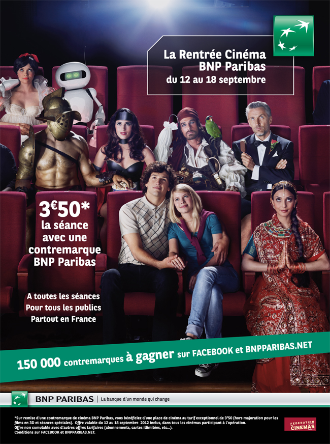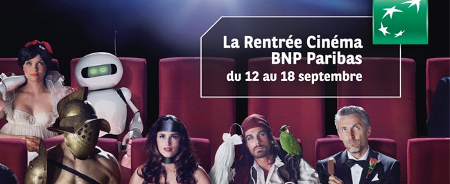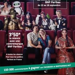 Pour tous les spectateurs munis d’une contremarque BNP Paribas, le cinéma sera à 3 euros 50 du 12 au 18 septembre. 150.000 contremarques sont à gagner sur Facebook, Séance Radio, la web radio cinéma de BNP Paribas et BNPParibas.net depuis le 15 août.