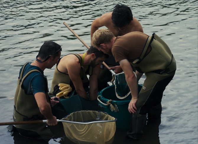 Ces personnes que l’on verra intervenir dans leur domaine, s’exprimeront aussi, sans être nommées, et filmées de près face à un interlocuteur qui les interroge mais que l’on ne verra jamais : un bénévole qui participe au nettoyage des berges, un pécheur qui remet ses poissons à l’eau après les avoir attrapés, plusieurs agriculteurs exerçant dans le respect des éléments.