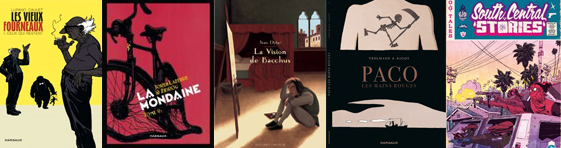 On retrouve également dans la sélection La Vision de Bacchus, de Jean Dytar, dont la couverture n’a pas fini de nous émerveiller et le très graphique Paco les mains rouges , par Fabien Vehlmann et Eric Sagot.
