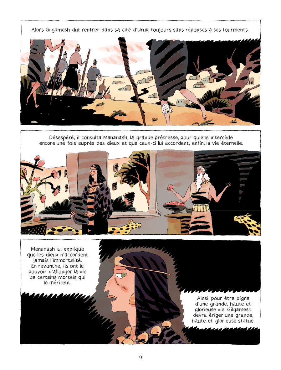 Esquisse inédite d’une cité d’Ourouk à la fois imaginaire et bien ancré dans l’Histoire, La Statue de Gilgamesh joue une partition maîtrisée qui montre l’écriture à la fois à ses débuts et comme point final d’un récit aux multiples facettes.