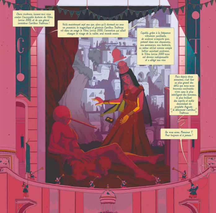 Résumé : Marv, ancien inventeur, est désormais livreur, et lorsqu’il pénètre dans l’enceinte de l’usine Traitruss, la plus incroyable et riche de toute la ville, c’est pour remettre en main propre une lettre à la veuve de l’industriel, Olympe.