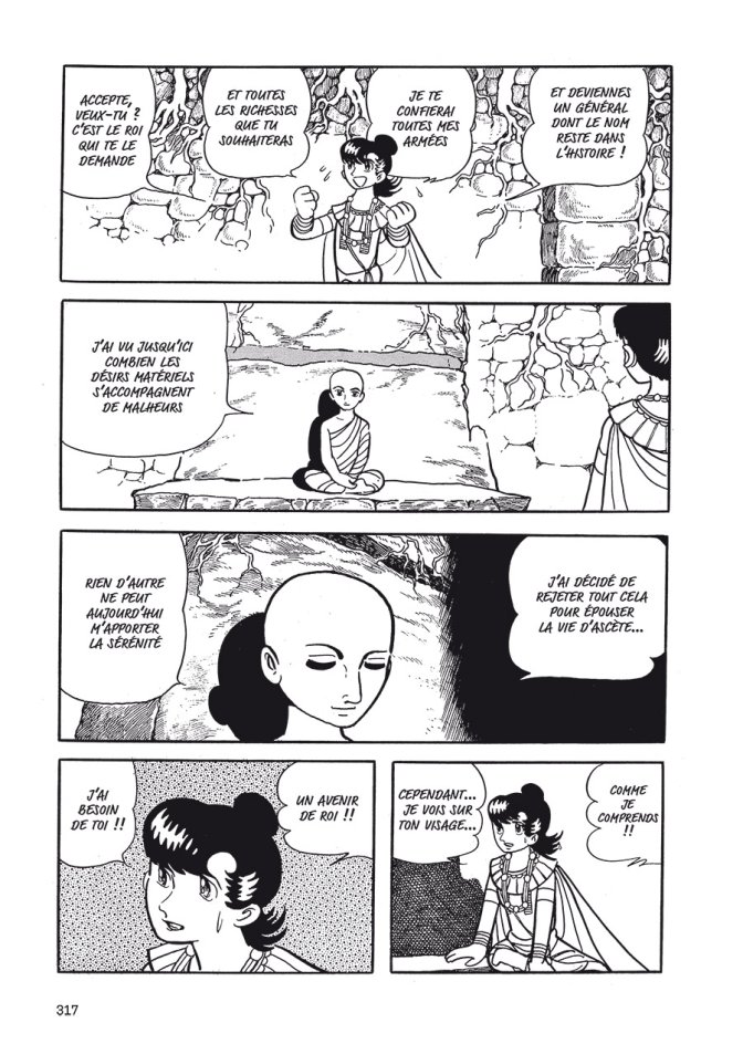 Car avant toute chose, qui entame la lecture de Bouddha doit savoir dans quoi il s’embarque : en effet, la série court sur plus de 3 000 pages (environ 800 par tome) ! Mais le jeu en vaut la chandelle. Nombreux sont ceux qui considère cette production de Tezuka comme un chef-d’œuvre et il est difficile de leur donner tort tant elle est riche, aussi bien sur le plan de la narration que du dessin.