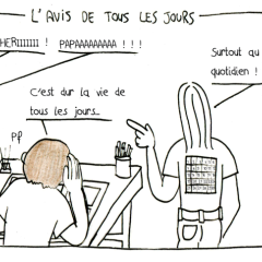 Néanmoins, on prend plaisir à suivre la vie de cette famille. D’autant plus qu’au fur et à mesure que la lecture avance, des petites intrigues se mettent en place et laissent présager des surprises pour l’éventuel tome deux. ce qui fait que si certains gags peuvent se lire dans le désordre, d’autres suivent une narration structurée.