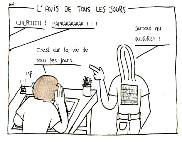 Dans la famille de La Vie De Tous Les Jours, vous pouvez demander le père, auteur de BD qui travaille à domicile, la mère, qui travaille à la crèche et Léon, le fils, qui travaille à semer le désordre dans cette gentille famille ! Rien ne vous sera épargné dans le quotidien de ce trio, à part la mauvaise humeur !