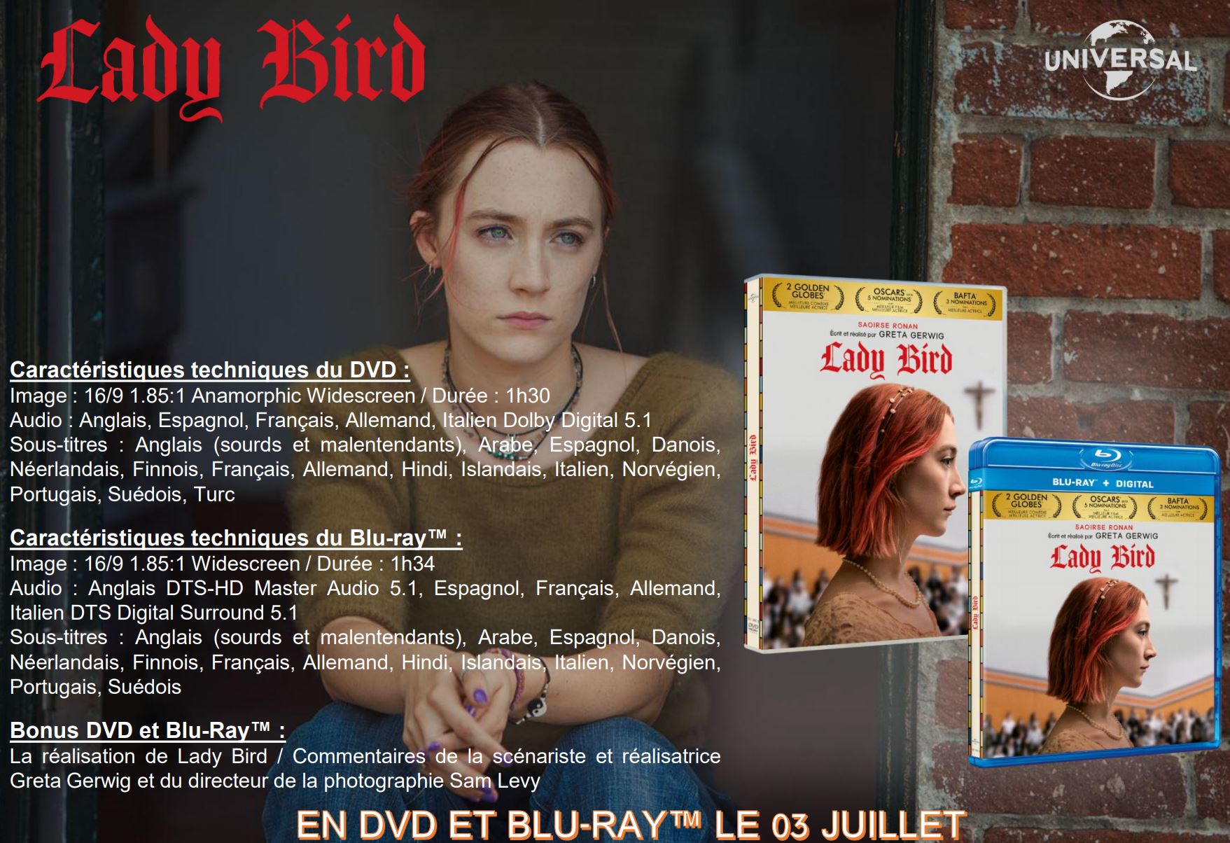Résumé : Christine « Lady Bird » McPherson (Saoirse Ronan) se bat désespérément pour ne pas ressembler à sa mère (Laurie Metcalf), aimante mais butée et au fort caractère, qui travaille sans relâche en tant qu’infirmière pour garder sa famille à flot après que le père de Lady Bird (Tracy Letts) ait perdu son emploi.