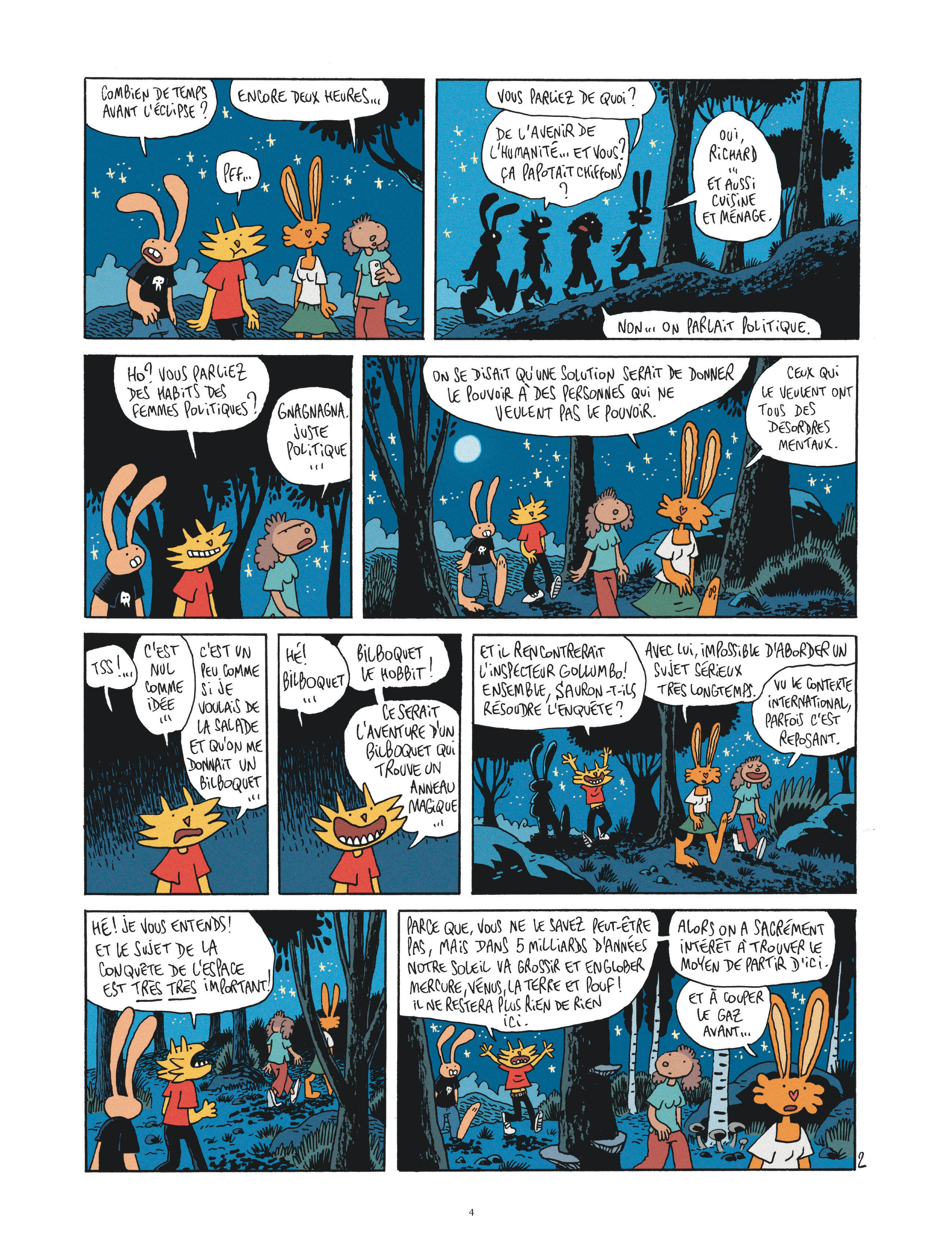 Résumé : Lapinot, Richard, Camille et Marinette se rendent dans les ruines d’un château afin d’y observer une éclipse de lune. Ils doivent être rejoints par un couple d’amis qui tarde à arriver. Ils croisent une drôle de créature, sûrement issue d’un jeu de rôles. Ça tombe bien, ils rencontrent justement des personnes s’apprêtant à en effectuer un. Mais la zone est également fréquentée par de nombreux autres visiteurs…