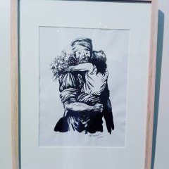 Manu Larcenet, auteur emblématique du Combat ordinaire, de Blast et donc du Rapport de Brodeck, dont Avoir-Alire a dit tout le bien qu’il en pensait ici, expose en galerie des croquis, dessins et planches des deux tomes de son adaptation du roman de Philippe Claudel. Il présente également, à cette occasion, une série de grands dessins à l’encre inédits et des peintures acrylique sur toile, qui présentent des portraits de personnages.