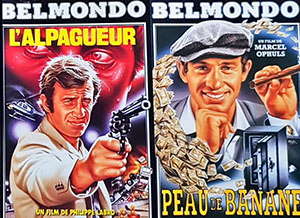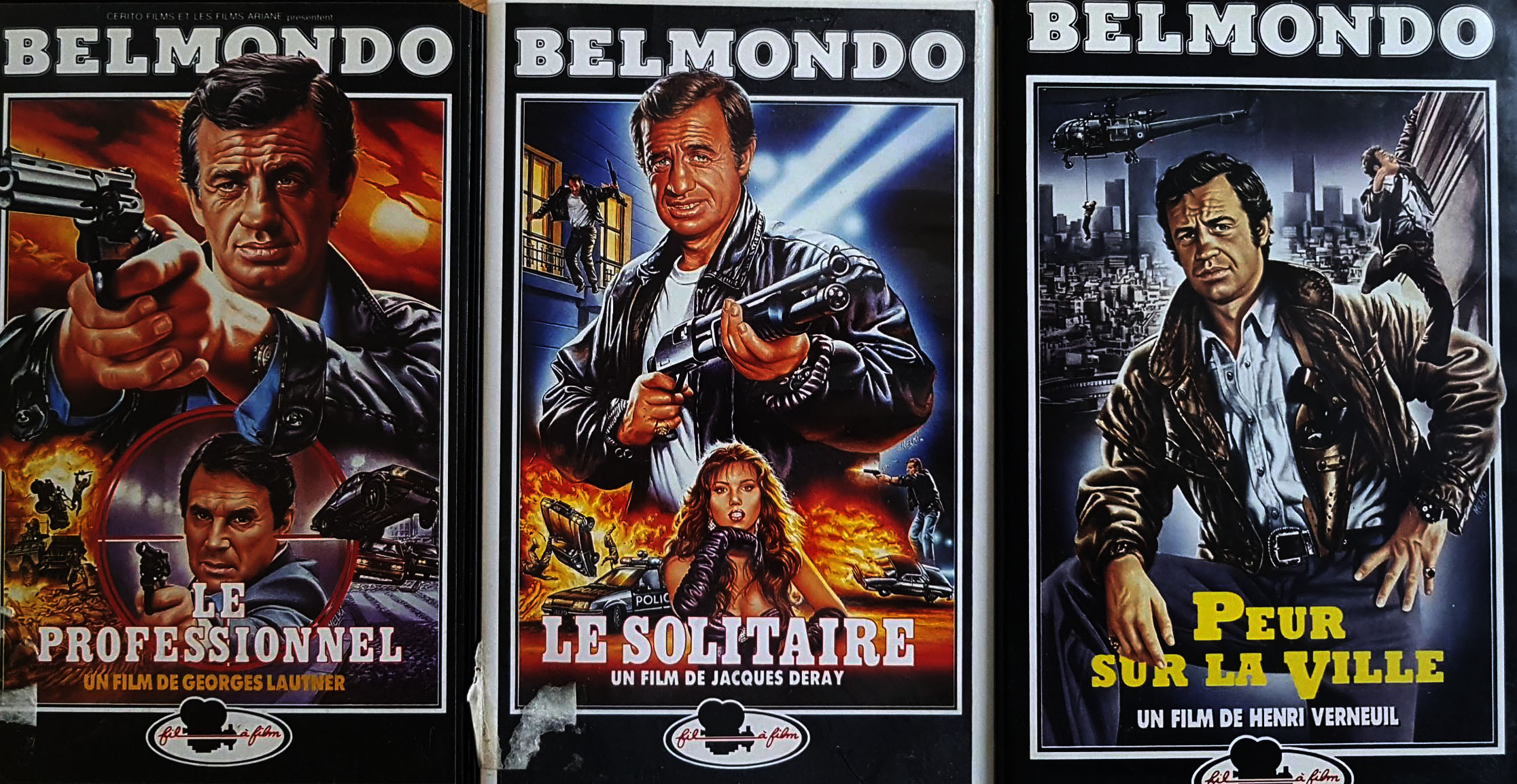 Ca se passe plutôt pas mal, on a même failli se rater. Le siège social était en Normandie, j’ai rendez-vous avec le boss, je l’attends, il n’est pas là. J’attends quatre heures, il arrive à la nuit tombée… Il m’avait complètement oublié : « ah ouais, ouais, je voulais te voir, viens dans mon bureau. ». Je lui ai montré mon boulot et il trouve ça génial. Il me donne plein de films d’épouvante et comme c’était un bon pote de Lelouch, qui venait de faire Itinéraire d’un enfant gâté, un jour il me demande si ça me dirait de faire la collection Belmondo. Il voulait une unité, mais il voulait changer les visuels de salles, alors qu’à la base, il y avait déjà des affiches de cinéma fabuleuses. Les affiches de Belmondo étaient mythiques. Les illustrations étaient signées Mascii, Casaro… J’étais comme un môme face à son idole.
