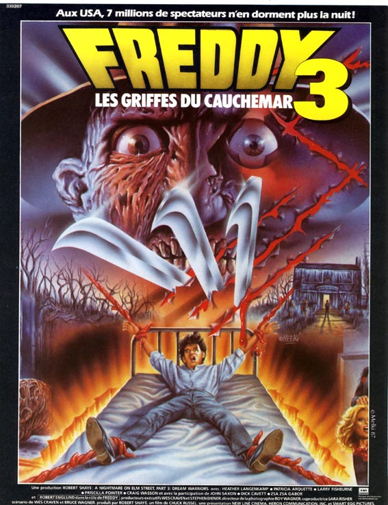 Ouais, toujours. Pour tous ces petits films là, sauf pour la caméra, la mise en scène et les acteurs, j’ai l’humilité de dire que je faisais à peu près tout ! Je faisais les slogans : « suppliez-le pour qu’il vous tue d’abord. », « derrière la porte quelque chose vit » pour Trauma, « aux USA, 17 millions de personnes n’en dorment plus la nuit. », pour Freddy 3. « Il est déjà trop tard pour hurler »… Là je suis dans mon élément, c’est grand-guignolesque, c’est punchy…. C’est comme Audiard…
