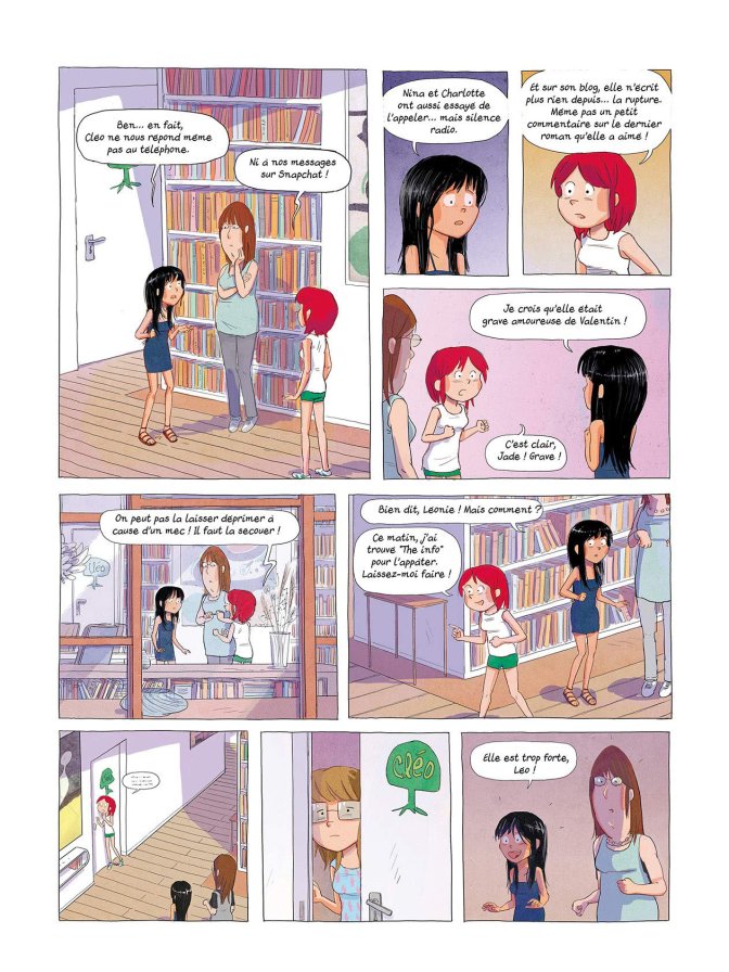 Au dessin, Grégoire Mabire continue à donner vie à ce groupe d’amies si attachantes. Son trait léger, son dessin apparemment simple, ses mises en scène efficaces contribuent au charme de cette bande dessinée. L’alternance entre page de Blog et récit BD est toujours présente dans ce tome. Il faut dire que c’est la marque de fabrique de la série. Enfin, une des marques de fabriques... Et les posts du blog nous dévoilent les pensées de Cléo, tout en nous faisant ressentir les émotions de ceux qui la lisent au travers des commentaires. Ce qui crée aussi une autre manière de faire avancer l’histoire.