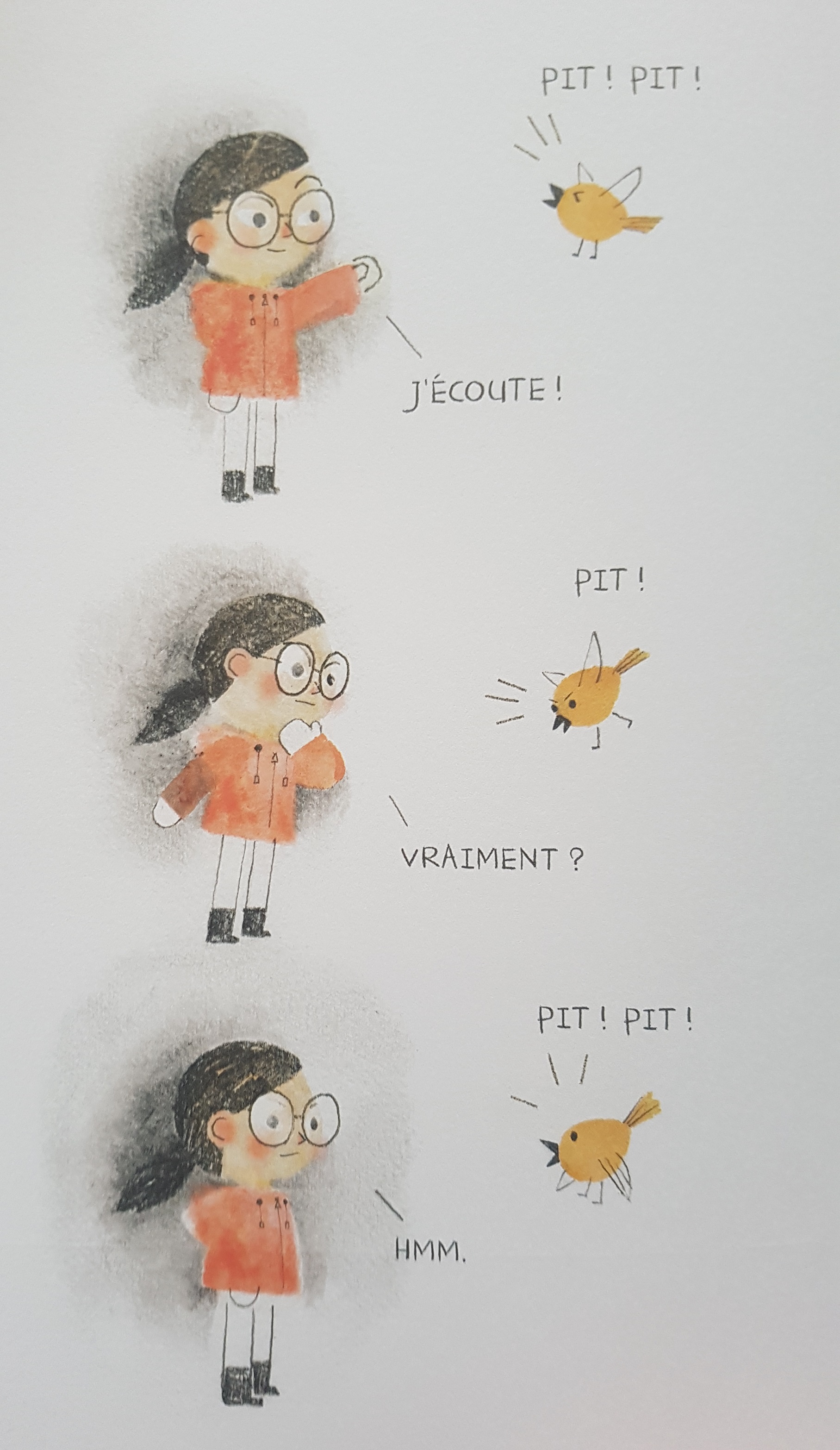 Kyo Maclear nous éclaire de ses lumières sur l’état de notre planète avec le concours de Kenard Pak et sa jolie technique faite de superpositions et transparences qui rappellent l’origami et la fragilité de notre monde.