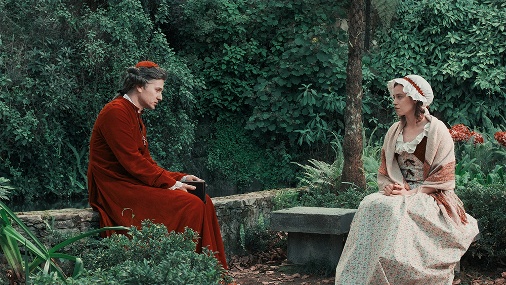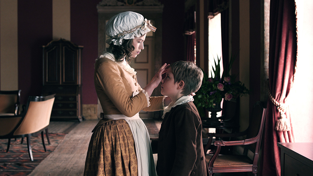 Nous sommes à la fin du XVIIIème siècle. Le romantisme du siècle à venir affleure lentement à travers les personnages, et notamment celui de la nourrice, interprétée par Lou de Laâge, lumineuse et sensible. Celle-ci incarne la fin annoncée du rationalisme des Lumières et cède à la mélancolie des paysages et le bouleversement des émotions. Même la guerre civile qui brutalise la France est l’occasion d’exprimer le destin d’une héroïne de roman pour cette jeune femme, absolument magnifique, qui s’égare entre une maternité avortée, des amours empêchées et une paternité obscure. Contre toute attente, Stanislas Merhar incarne un cardinal sombre et intriguant. Le fameux cahier noir dont il est mention dans la première séquence devient pour son personnage le témoin de l’histoire des capitales européennes de l’époque, où il tente de se sauver de ses propres démons et de protéger cette fragile nourrice d’elle-même. Il est un caméléon de la noblesse, capable de se transformer en religieux, en marchand et même en révolutionnaire bourgeois.