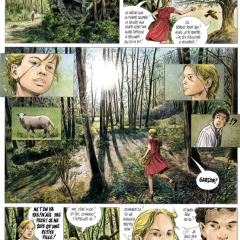 Le charme de cet album provient de l’élégance du dessin, un support calme et chaleureux, qui voit la couleur verte s’imposer, grâce aux feuilles, aux herbes qui occupent chaque espace de case. Le chalet rustique, son ponton rassurant, les éléments du décor qui n’appartiennent pas à la forêt acquièrent cependant rapidement une aura, une magie que l’histoire développe à mesure que les saisons avancent. Éden retrouvé ou prison lumineuse, il appartient au lecteur de décider l’emprise qu’exécutent ces planches assez hypnotiques, en tous cas franchement bucoliques.