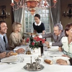 Critique : Œuvre tardive de Buñuel, puisqu’il ne tournera plus que deux fois, Le charme discret de la bourgeoisie se fonde sur un principe simple : la répétition. En effet, les six notables amis passent leur temps à se réunir pour manger, sans jamais y parvenir véritablement. Sur ce canevas, dont Jean-Claude Carrière a révélé qu’il venait d’une anecdote narrée par le producteur Serge Silberman, le film propose sept variations, chaque interruption étant différente des autres, sept manières de ne pas manger, mais avec une gradation : non seulement elles vont de la plus plausible (se tromper de date) aux plus extraordinaires et violentes (arrestation ou exécution), mais de la plus réaliste à la plus onirique. Car la construction de cette intrigue absurde est, quant à elle, rigoureuse, à l’image d’une réalisation sage, qui refuse les effets comme pour la rendre plus réaliste ; d’autant qu’à l’intérieur de ces répétitions en surgissent d’autres, que ce soit des situations (des gens qui racontent un souvenir ou un rêve, ou cette énigmatique marche sur une route déserte), des dialogues, des fantômes ou même des curiosités arbitraires (une explication complètement recouverte par un bruit d’avion puis de machine à écrire).