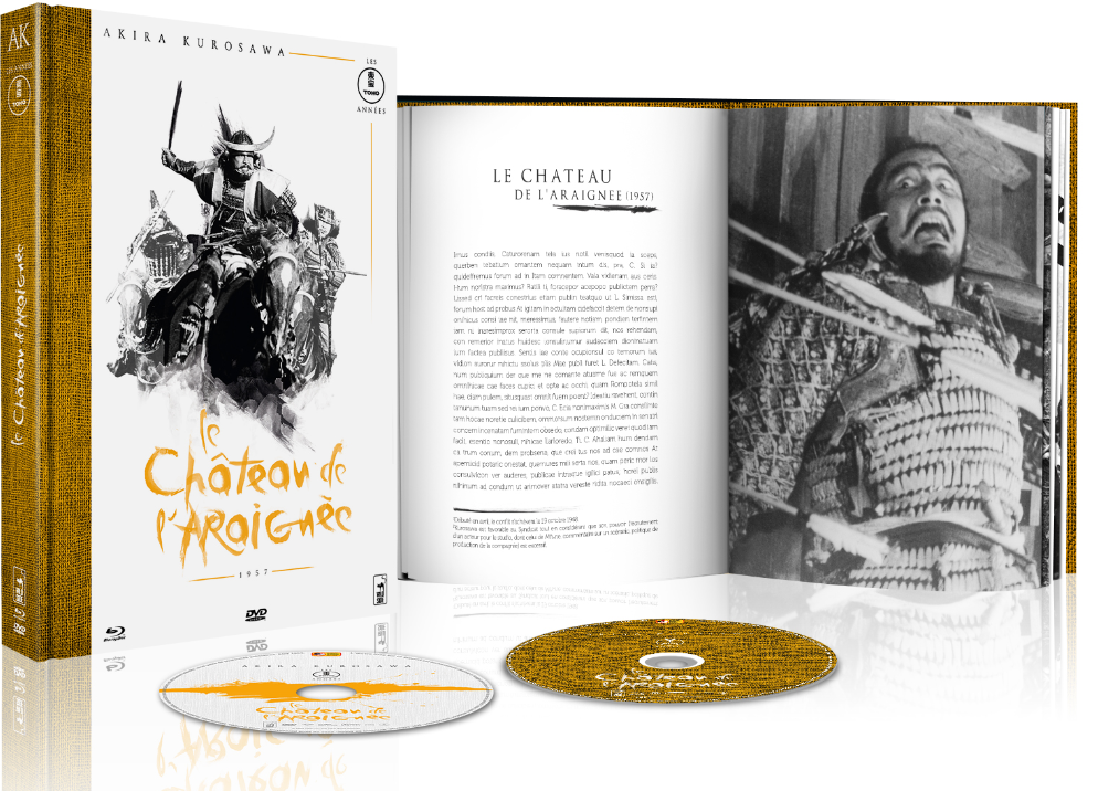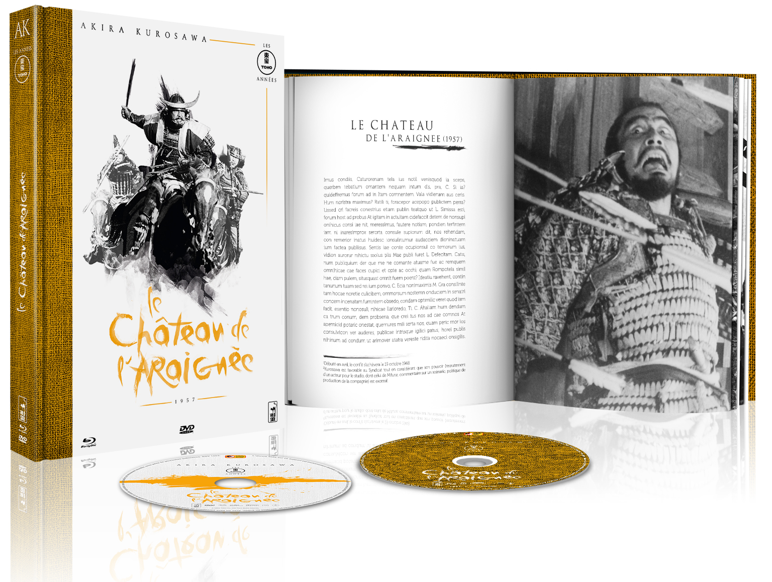 Le théâtre nô et le cinéma(23mn) analyse l’influence du nô sur les films de Kurosawa et en particulier sur les décors et la gestuelle du Château de l’Araignée ; Dans la toile du maître (21mn) réunit des entretiens avec des collaborateurs du cinéaste sur le tournage du film. Les deux documents sont passionnants, rarement redondants, parfois émouvants. Le Blu-ray comporte également la bande-annonce, mais ce qui fait le prix du coffret, c’est évidemment le livret. Signé par Linda Tahir, il revient sur Shakespeare et le cinéma aussi bien que sur le tournage du film, avec une précision et une rigueur à saluer.