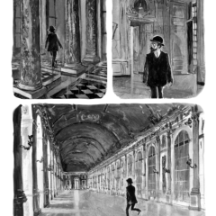 Mettre au jour l’histoire républicaine de château de Versailles : tel est le projet original de Maïté Labat. Cette dernière, qui a travaillé 8 ans au château, s’est plongée dans les mémoires de Pierre de Nolhac et s’est décidée à partager ce pan très méconnu de l’histoire de Versailles. Pourtant, la détermination de Pierre de Nolhac a grandement contribué à faire du château de Versailles le joyau du patrimoine national que nous connaissons aujourd’hui. Grâce au dessin au lavis du talentueux Alexis Vitrbert, Le château de mon père parvient à immerger le lecteur dans l’ambiance du XIXe siècle finissant. Derrière Pierre de Nolhac, nous assistons à la réhabilitation patrimoniale et mémorielle du château jusqu’à la signature en 1919 du traité de Versailles qui scelle la fin de la Grande Guerre. De vestige de l’absolutisme royal, le château de Versailles est devenu une incarnation de la grandeur de la France victorieuse.
