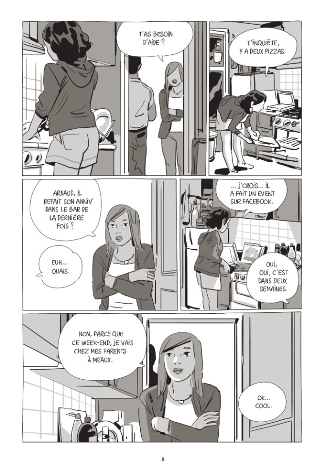 Noir, blanc, gris, c’est comme cela que travaille l’auteur, et cela lui convient très bien quand il scrute l’intime et le scandaleux. Une poitrine généreuse, une rue glauque et le tour est joué, ces éléments résumant bien la construction qui s’étire autour du vêtement, davantage que des personnages, certains n’ayant ni traits ou épaisseur, le besoin ne s’en faisant d’ailleurs pas sentir. Enfin, comme un symbole, la banalité innocente du début s’étiole aussi dans les planches, faisant place à des dessins de plus en plus crûs et violents. Une escalade recherchée, un peu gratuite, visiblement destinée à choquer.