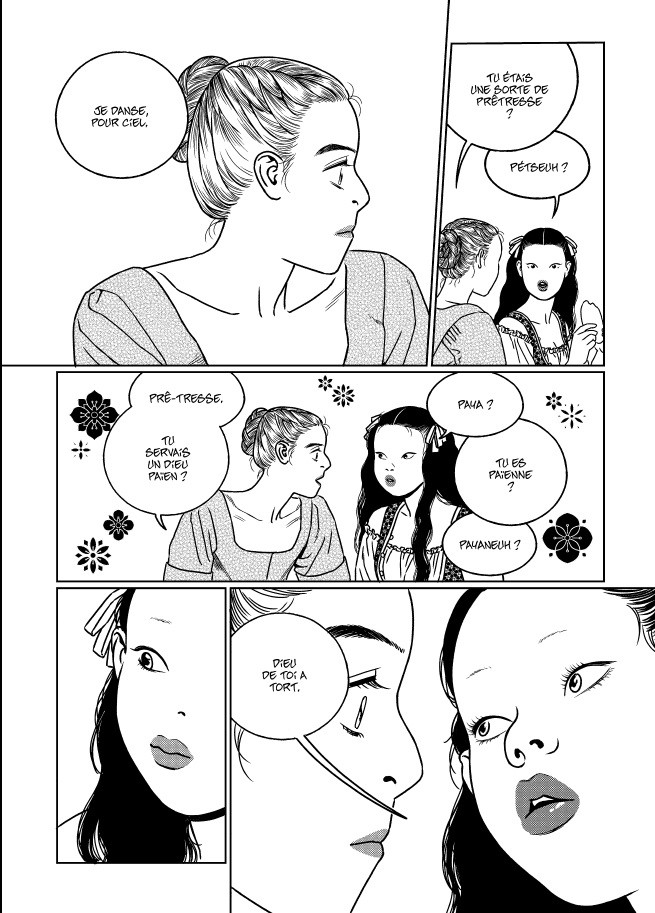 Critique À quoi tient un chef d’œuvre ? S’il s’agit d’être dans l’air du temps, de sentir un sujet et de le faire tenir dans un livre, à savoir dénoncer indirectement un système archaïque de domination masculine, Le Ciel pour conquête est tombé en plein dans le mille. Ce récit nous entraîne en Hollande, un État qui part à la conquête des mers avec des marchands et des vendeurs d’épices qui arpente non pas Arrakis mais les colonies nouvelles. En ces temps d’exploration, les femmes sont bien souvent cantonnées à des tâches matrimoniales, et l’héroïne est l’une d’elle. Noble déclassée, elle subit les devoirs conjugaux, les ragots, l’impression de néant, sans que la religion n’apaise clairement ce mal être. Or, c’est dans ces petits détails que se constituent l’essence de cet album, bien plus que l’irruption d’une esclave venue d’Orient, et bien davantage que les travaux qui la conduiront à créer les plans d’une première montgolfière. L’album explore ces scènes d’un quotidien avare en bonheurs mais plein de sourdes violences conjugales. Yudori parvient à émouvoir avec le portrait de journées et l’avancées progressive des réflexions de l’héroïnes, ainsi qu’avec ces portraits de femmes – la vieille servante rompue, la jeune femme naïve naïve et l’esclave lucide.