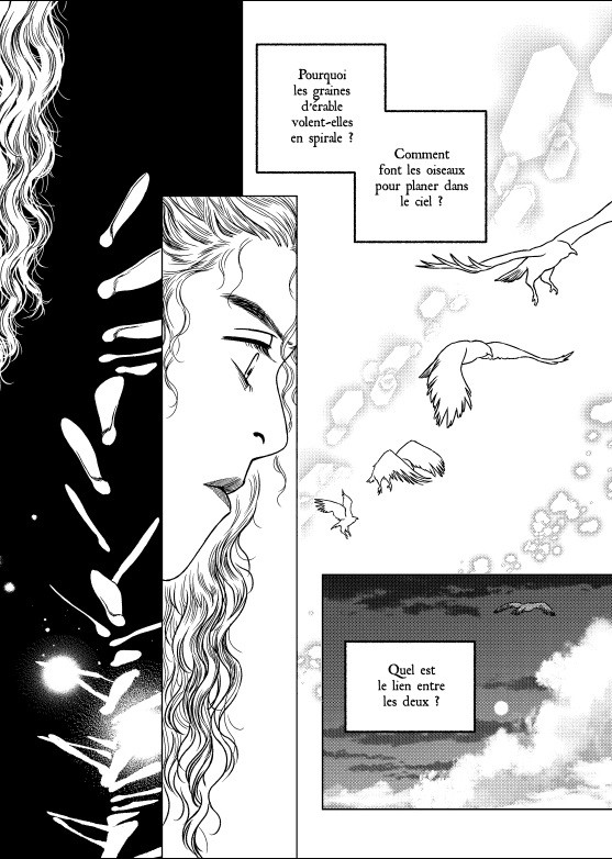 Pour faire un chef d’œuvre en bande dessinée, il faut naturellement que le dessin soit à la hauteur. La prestance des planches de Yudori est telle qu’elle fait percevoir une sensibilité dans chaque case, qui accroche le regard. D’un côté, c’est un regard qui s’appuie ou s’accroche, révélant un doute ou une faiblesse, de l’autre c’est un corps dénudé, offert ou sacrifié, souvent annonciateur de douleurs et d’espoirs déçus. Aussi, il faudrait analyser plus de trois cents pages pour en saisir la beauté de chacune, tant elles peuvent être affichées séparément pour chacune afficher un message, une injustice, un poème.
