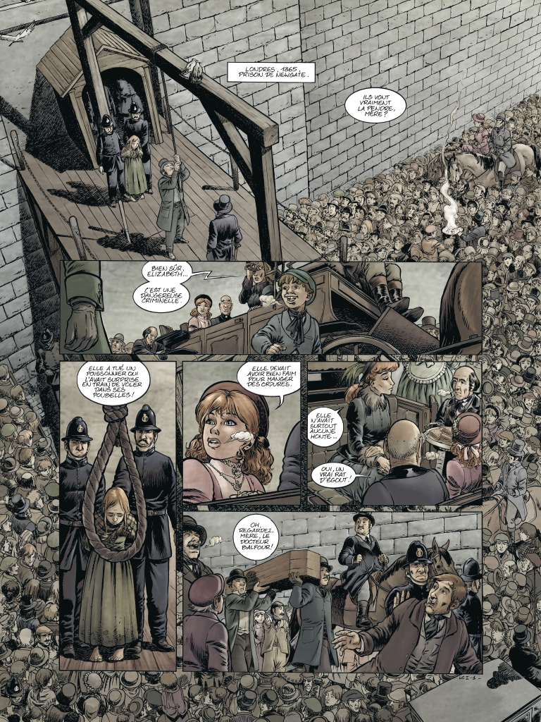 Pour une histoire qui se déclinera en deux volumes, on peut regretter que le rythme du premier tome soit aussi calme, sans trop dévoiler des personnages. En effet, on peut imaginer que l’action sera plus soutenue dans le volet final, et on peut espérer que ce club aura la fin qu’il mérite... Même si vu l’histoire, ça semble mal parti pour une fin heureuse. Car avec le dessin, bien centré autour des émotions des personnages, qui n’oublie pas pour autant les décors de Londres, délabrée d’un côté, richissime de l’autre, et donc le scénario finalement assez pesant, The Bogeyman propose un voyage en immersion dans l’horreur. L’horreur latente, cachée, qui se dissimule sous de beaux habits (et des masques un peu kitsch), mais qui du coup fait davantage peur. En fait, les derniers dessins sont presque de trop, il aurait peut-être fallu les suggérer... Mais comme tout était déjà implicite, c’était évidemment compliqué.