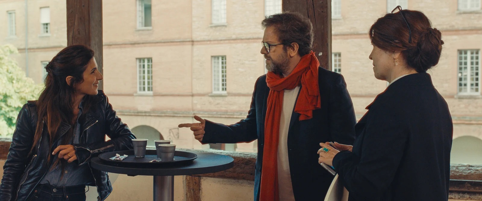 Critique : Parler du cinéma sur un écran pourrait paraître rébarbatif et pompeux. Justement, en mettant en scène une scénariste qui vient témoigner de son art devant des étudiants en cinéma à Toulouse, constitue une véritable opportunité d’apprendre sur le métier de conteur dans un long-métrage. D’autant quand Noémie, la scénariste, est elle-même interprétée par Agnès Jaoui dont le spectateur ne manquera pas de se souvenir des nombreux films qu’elle a écrits avec son compagnon de toujours, Jean-Pierre Bacri. Le Cours de la Vie se présente comme une comédie dramatique attachante qui a pour objet de mettre en scène le métier méconnu de scénariste, à travers les traits d’une cinquantenaire hantée par un passé secret et une relation ancienne avec le directeur de l’école qui l’accueille. En ce sens, Frédéric Sojcher s’engage sur un projet sincère au milieu d’une filmographie ambitieuse et militante.