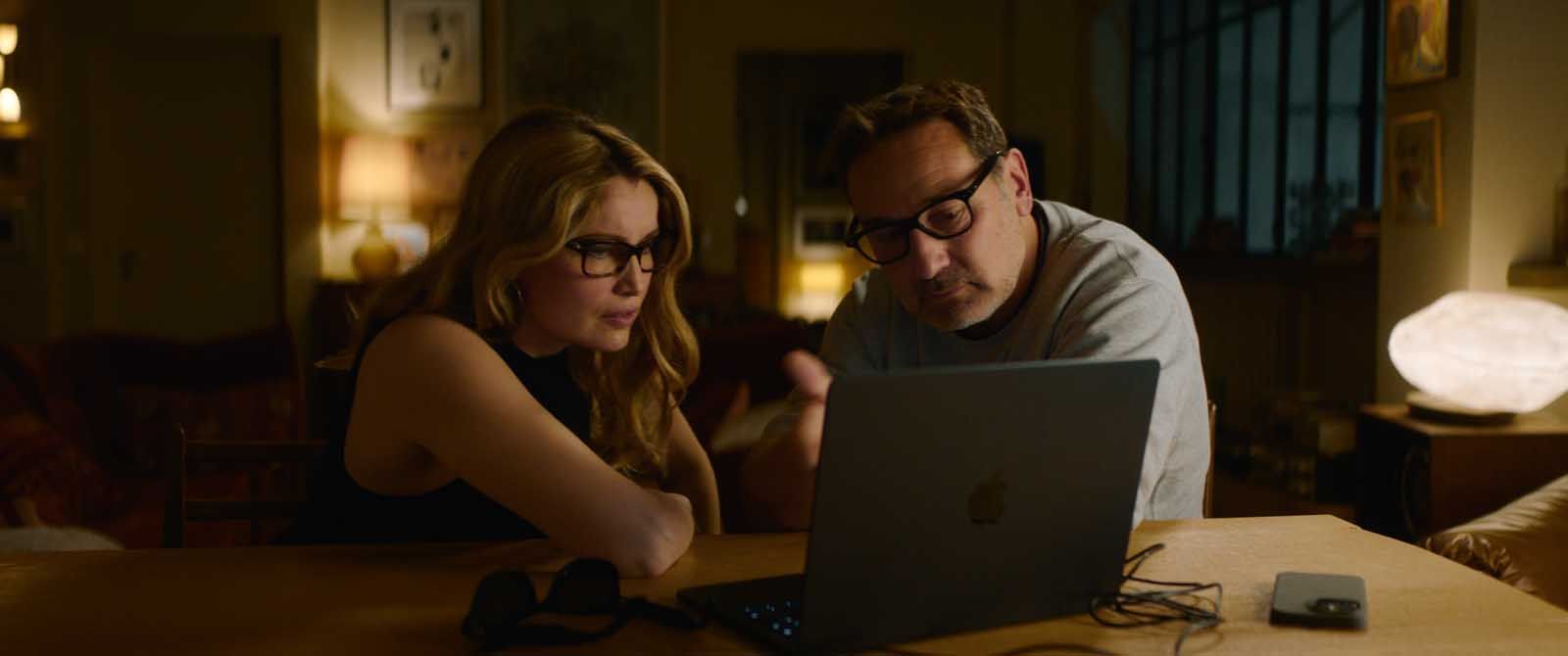Les deux héros principaux sont campés par un Gilles Lellouche et une Laetitia Casta volontairement caricaturaux. Le premier est un écrivain bougon, pas très courageux : la seconde une professeure de cinéma à la Sorbonne, téméraire et malicieuse. Ils suspectent leur voisin, dans la cour opposée à leurs fenêtres, un comédien shakespearien raté, d’avoir sauvagement assassiné son épouse. Tout ce petit monde se surveille, se méfie les uns les autres, et tentent pour l’un d’éteindre les soupçons, et pour les deux autres, au contraire, d’assouvir leur soif d’aventure. La fiction héritée des ouvrages qu’écrit François se mélange joliment à cette enquête dont évidemment le spectateur connaît l’issue finale, dès lors qu’il s’est un peu intéressé aux films de Hitchcock.