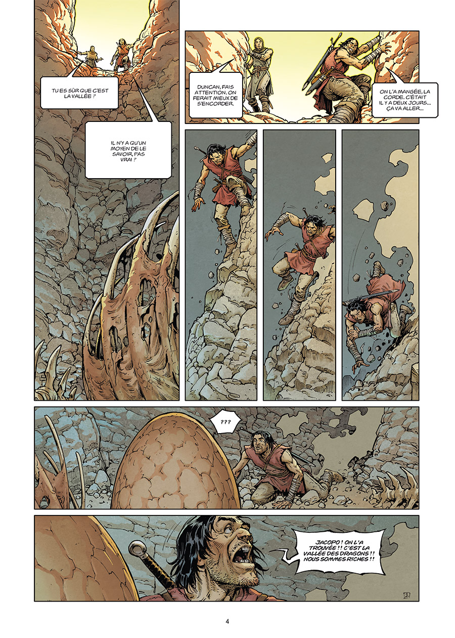 En pleine hype du Feu et de la Glace, parler de dragon paraît étrangement naturel. C’est mal connaître Jean-Pierre Pécau, qui n’a pas attendu la saga de Georges R.R. Martin pour parler de donjons et autres créatures. Aussi, Le dernier dragon peut se voir comme un jeu de rôle uchronique médiéval particulièrement plaisant qui serait retranscrit en planches. S’il y a bien une quête, celle de l’œuf, vous ne trouverez pas de confrérie, mais bien une part belle réservée aux oubliées de l’Histoire, les femmes. Dans la lignée de La Geste des Chevaliers Dragons, le rapport matriarcal est exploité, l’histoire laissant libre cours à une dimension de sorcellerie et de dragons bien de type bien fantasy, mais aussi à une organisation du type Templier revisité au féminin. Une belle initiative, qui fonctionne parfaitement avec un ordre, une hiérarchie et des traditions qui font immédiatement sens. Et comme l’action se fait dure, mortelle très rapidement, le tout aspire le lecteur dans un sillage de souffre et de sang.