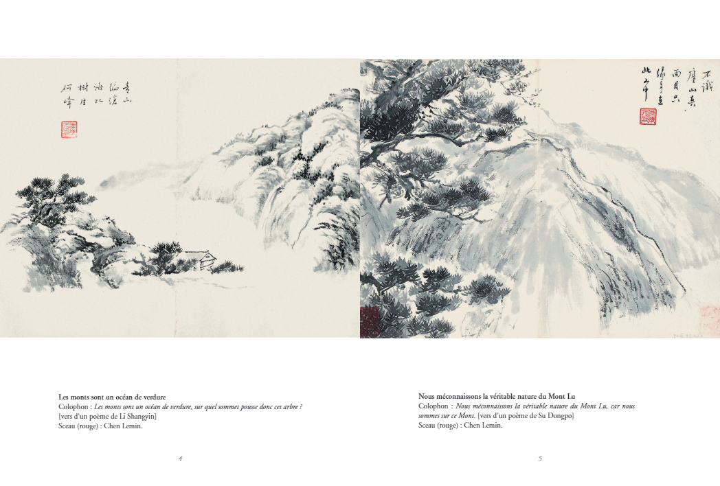 Notre plaisir ne s’arrête pas là car, en complément de ces toiles, plusieurs calligraphies de Chen Lemin sont aussi présentes dans ce livre.