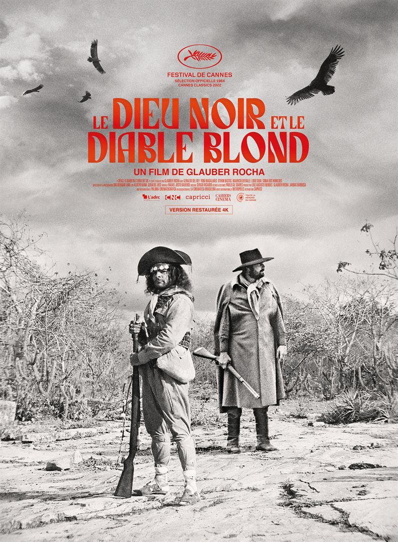 Oscillant entre lyrisme et distanciation, la mise en scène est splendide, et l’on ne voit guère ce que l’on pourrait reprocher à ce film : peut-être un jeu d’acteurs un brin théâtral, à l’exception de Geraldo del Rey dans le rôle principal. En tout cas, le cinéaste ne cherche guère l’art consensuel, et il est à noter que le film comporte une séquence de mort de bébé aussi glaçante que dans L’innocent de Visconti ou Trainspotting de Danny Boyle. Longtemps invisible du fait de la rareté de ses copies argentiques, Le dieu noir et le diable blond a pu être restauré par des fonds privés, le gouvernement Bolsonaro ayant refusé d’y prendre part. Fille du cinéaste et ayant-droit du film, Paloma Rocha a veillé à ce que les nouveaux outils numériques ne fassent pas d’interférence sur les prises de vue et cadrages d’origine. C’est cette version, présentée à Cannes Classics 2022, qui sort en salle en août 2023 à l’initiative du distributeur Capricci, cinquante-six ans après sa première présentation dans les salles françaises.